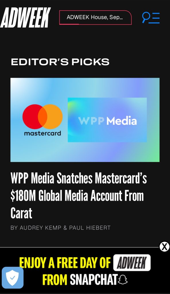 - Snapchat partnered with Adweek to knock down its paywall for a day. Neat.