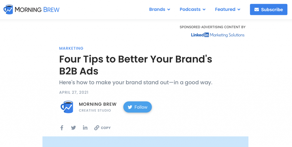 Four Tips and Tricks to Better B2B Ads, sponsored by LinkedIn Marketing Solutions on The Morning Brew.