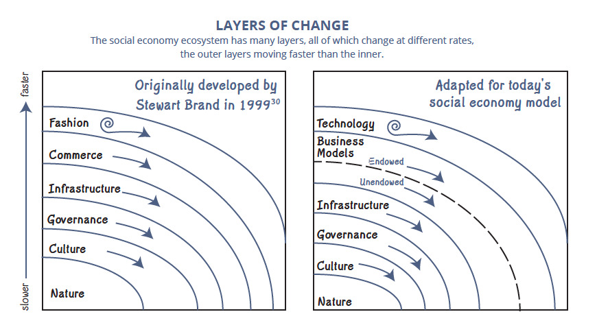 Stewart Brand has this decision lens called pace layers, which describes the different pace of change. Imagine a building, slow change is say the building, faster change is the rug in the lounge, in between is the paint on the walls. It’s a useful framework for thinking about how change occurs.