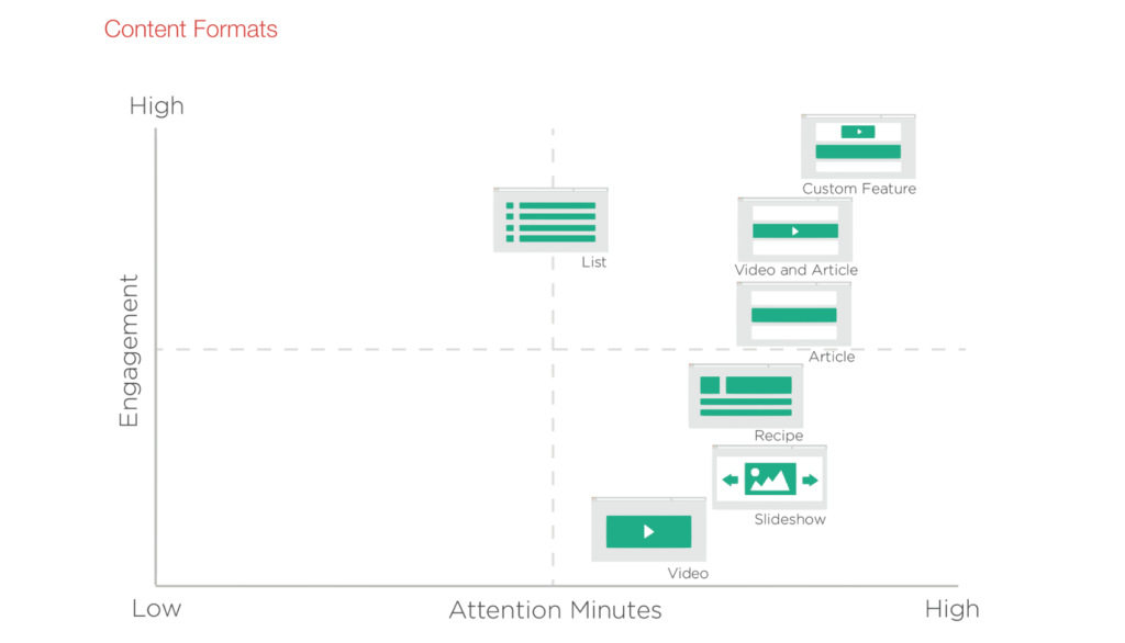 The below graph shows where content styles sit looking at engagement and estimated attention minutes (based on Nudge’s dataset from the full product).