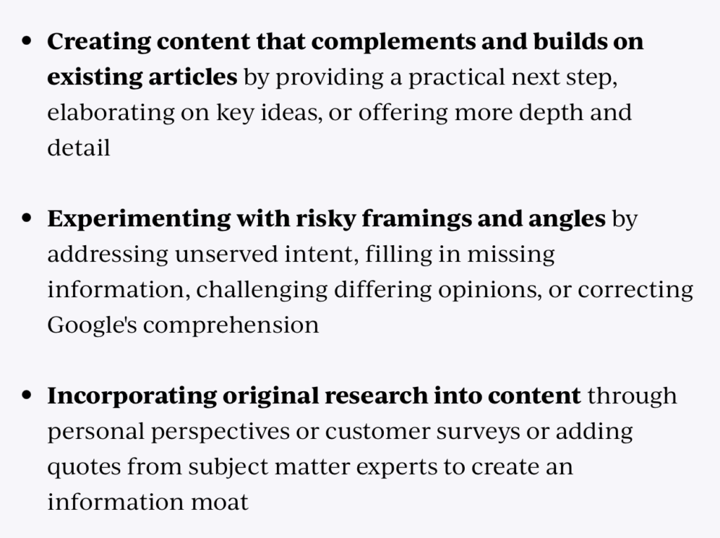 And this presents a framework for how Google may tackle indexing of content in the long run. A topic which Ryan from Animalz digs into, what could a new SEO / content world look like when AI is prominent. The core pillars of having a reputable brand, and additive content or point of view, seem to cut through.
