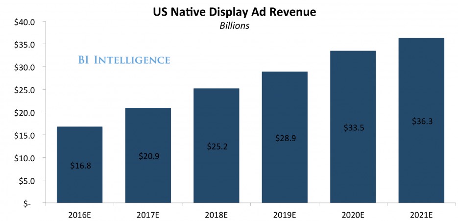 Native display ad revenue in the US will rise at a five-year compound annual growth rate (CAGR) of 17% during this time period to eclipse $36 billion.”