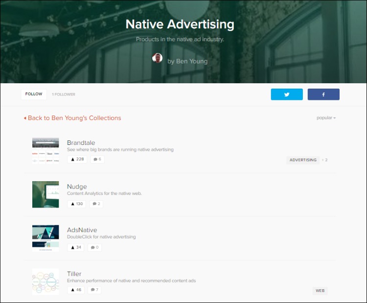 We want to expand on the Native Advertising Collection on ProductHunt, if your company isn’t on yet please do submit and share.