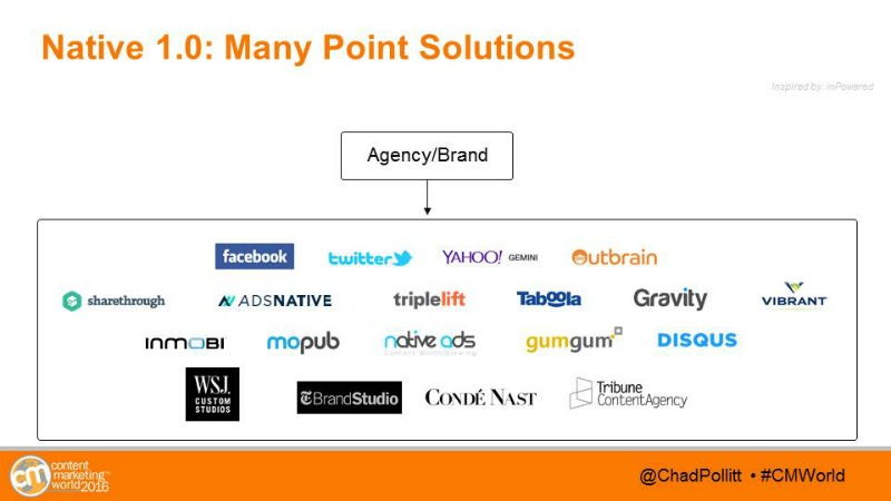 Many marketers exploring native advertising for the first time are going directly to networks like Taboola, Adblade, Outbrain and Revcontent, and/or they’re going directly to publishers for sponsored content.This is what Peyman Nilforoush, CEO and Co-founder of inPowered, calls “Native 1.0.” While the networks mentioned above do provide a level of scalability, marketers are still beholden to the size of the network.