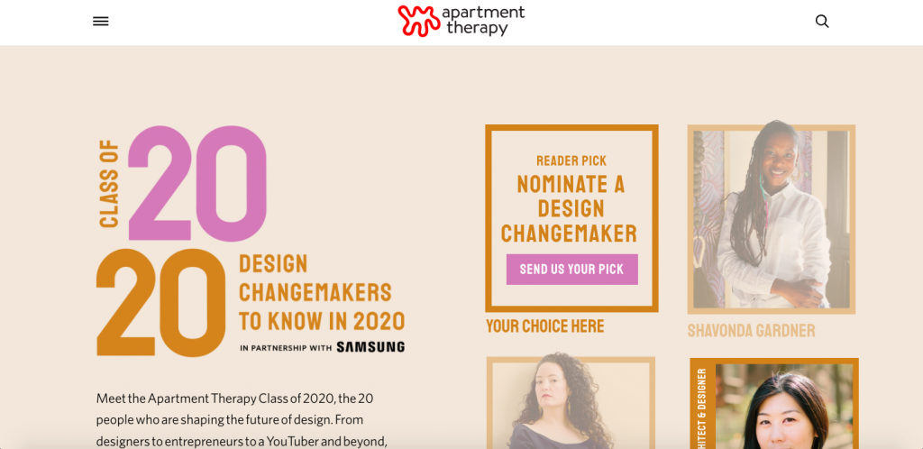 - The Class of 2020 – meet 20 people who are shaping the future of design. Apartment Therapy In partnership with Samsung.